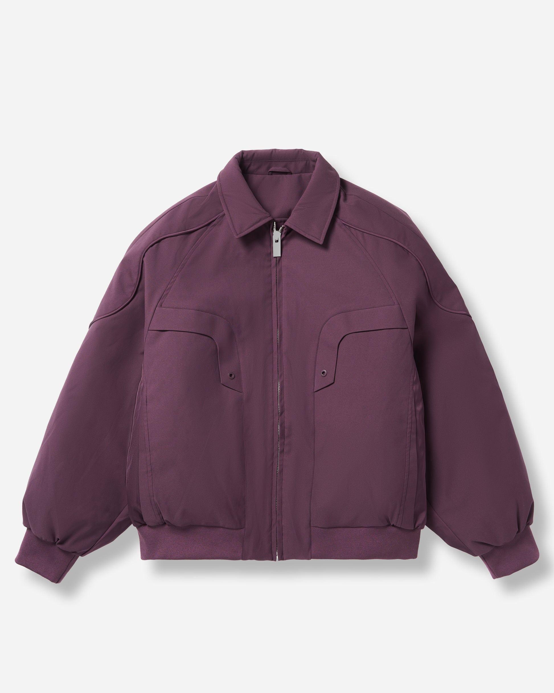 Features contoured pocket detailing and structured panel seams.